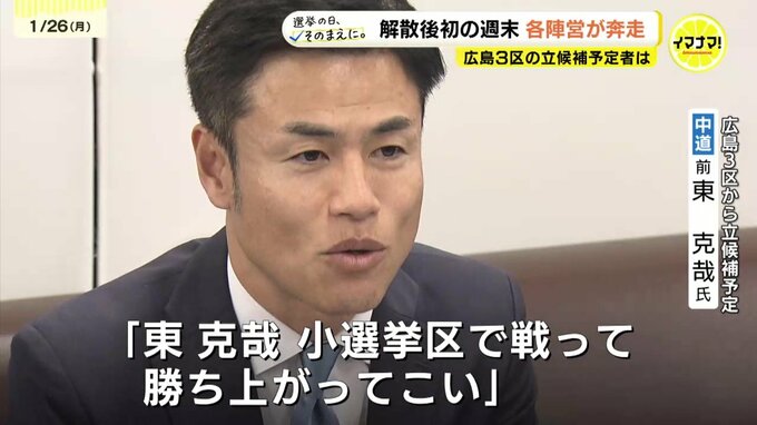 一方、元立憲民主党で、中道改革連合・前職の東克哉氏は25日、広島3区からの立候補を表明しました。前回の衆院選で戦った斉藤代表と、今度は同じ党で選挙戦にのぞみます。