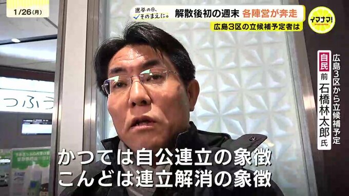 解散当日、地元に帰ってきたのは、広島3区から立候補を予定している、自民党・前職の石橋林太郎氏です。