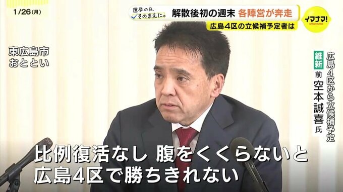 「比例復活なし。腹をくくらないと広島4区で勝ちきれない。改革保守として、保守系にも改革派の人たちににも強く訴えていると考えている」