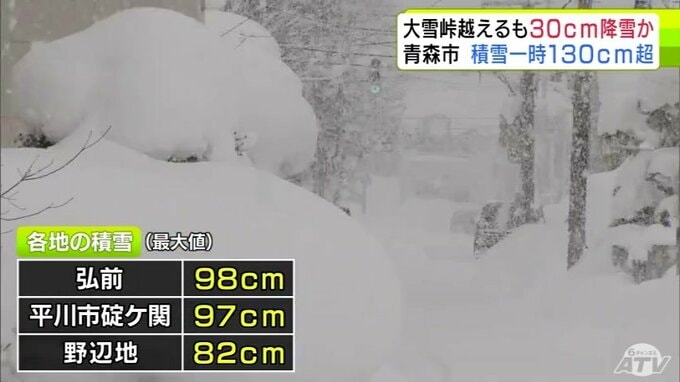 【雪の予想・26日午後9時半現在】雪・雪・雪…毎日「雪」 もういい加減にして “最強寒波”で青森市は積雪が一時130cm超 埋まる自動販売機 青森市内の様子と大雪シミュレーションで見る最新予想は? 青森テレビ 2026年1月26日(月) 21:37 国内 ♦大雪などの予想シミュレーションを見る (26~27日、28日、29日、30日、31日~2月1日) ♦この記事を最初から読む