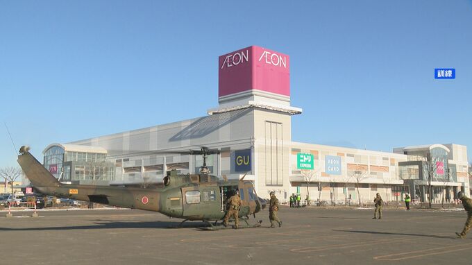 26日、北海道釧路市で、厳冬期の大地震を想定してヘリコプターで物資を運ぶイオンと自衛隊の共同の訓練が、初めて行われました。