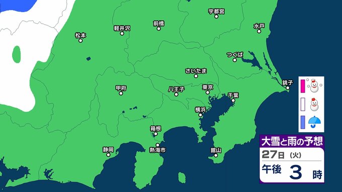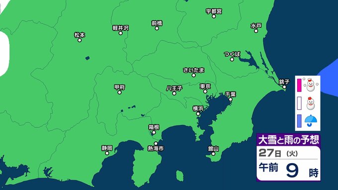 【東京の雪予想】29日・30日は横浜・千葉・東京など首都圏に雪雲も…いつどこで降る?東京、横浜、千葉、埼玉、つくば、栃木、群馬、山梨【気象庁 27日(火)~2月1日(日)の雪雨シミュレーション】 RSK山陽放送 2026年1月27日(火) 09:25 国内 27日(火) ▶27日(火)~2月1日(日)首都圏の雪雨シミュレーション