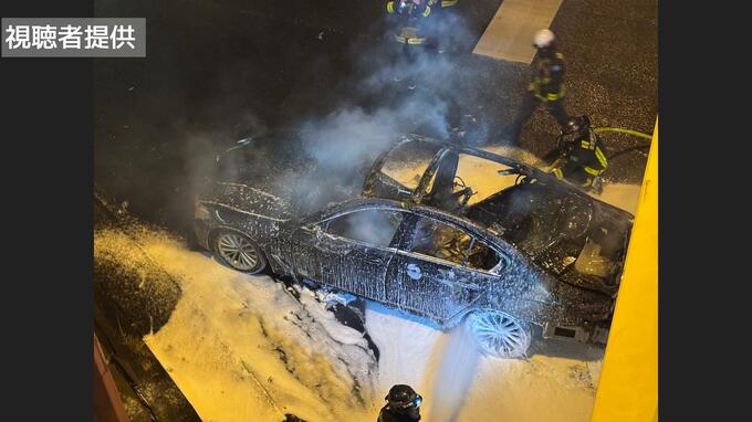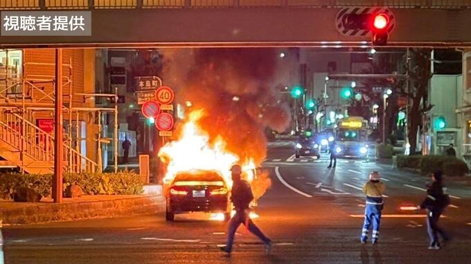 車は走行中に何らかの原因で出火したとみられており、警察と消防が火事の原因を調べています。