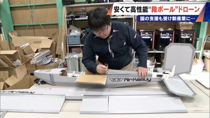 組み立てている男性は、ラジコン飛行機が趣味なのかと思いきや…実はれっきとした実業家。この段ボール飛行機は、販売を視野にいれたビジネス向けのドローンなのです!