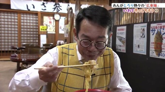 「たっぷりの具材と、何より餡がとろりと絡み着きますね。いただきます。餡がとっても優しい味わいで。ハクサイがシャキシャキの食感で全体をとろりとした餡が包んでいて絶妙ですね」