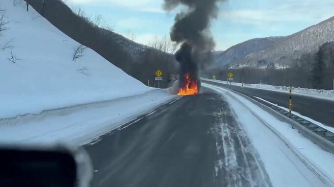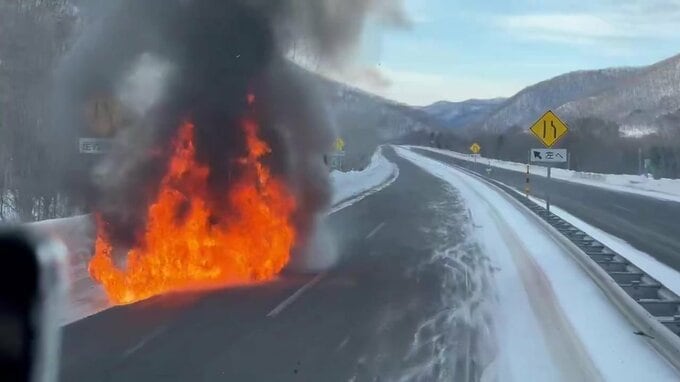 27日午前、北海道遠軽町の旭川・紋別自動車道で、北見発札幌行きの都市間バス、ニュースター号から火が出ました。