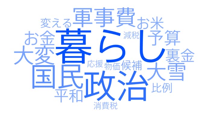 ※AIを使って「第一声」のキーワードを使用頻度で分析しました。候補が重要視しているとみられる文字が大きく太く表示されます。