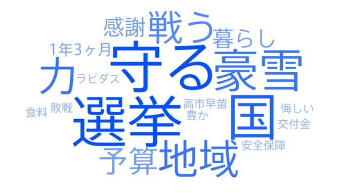 ※AIを使って「第一声」のキーワードを使用頻度で分析しました。候補が重要視しているとみられる文字が大きく太く表示されます。