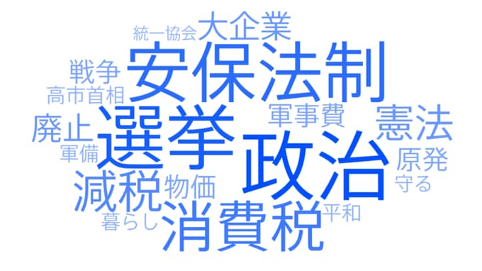 ※AIを使って「第一声」のキーワードを使用頻度で分析しました。候補が重要視しているとみられる文字が大きく太く表示されます。