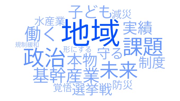※AIを使って「第一声」のキーワードを使用頻度で分析しました。候補が重要視しているとみられる文字が大きく太く表示されます。