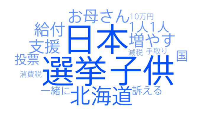 ※AIを使って「第一声」のキーワードを使用頻度で分析しました。候補が重要視しているとみられる文字が大きく太く表示されます。