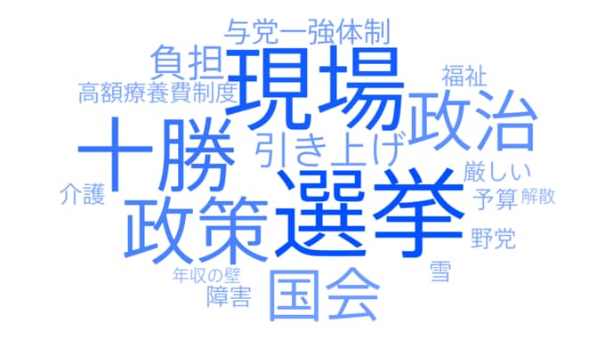 ※AIを使って「第一声」のキーワードを使用頻度で分析しました。候補が重要視しているとみられる文字が大きく太く表示されます。