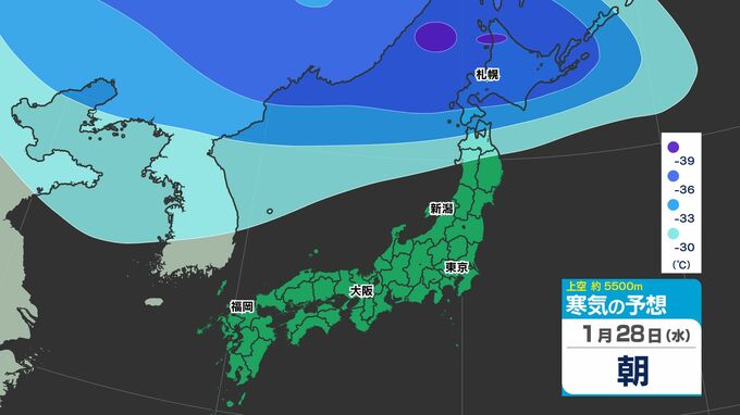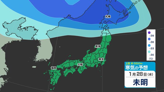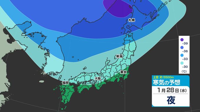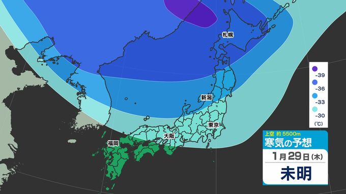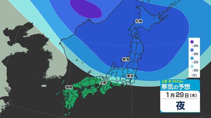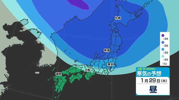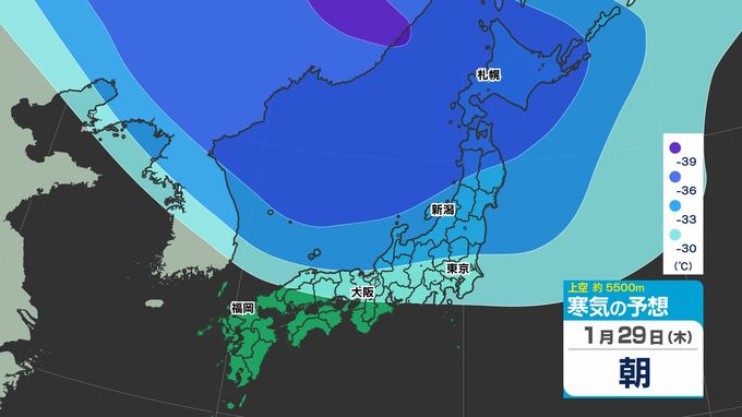 【東京首都圏 雪?】木曜・金曜「強い寒気南下」東京・神奈川で雪の予想【雪のシミュレーション27日(火)~2月1日(日)】/ 関東各都市の週間予報】東京・神奈川・埼玉・千葉・群馬・茨城・栃木・山梨・長野 南日本放送 2026年1月27日(火) 12:10 国内 天気 寒気シミュレーション28日(水)~2月1日(日) 上空約5500mには「大雪」の目安の「氷点下36℃以下」の寒気が、関東地方に29日(木)ごろ南下してくる見込みです。 この記事をはじめから → 【東京首都圏 雪?】「雪シミュレーション」
