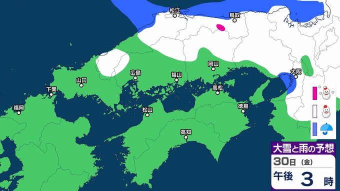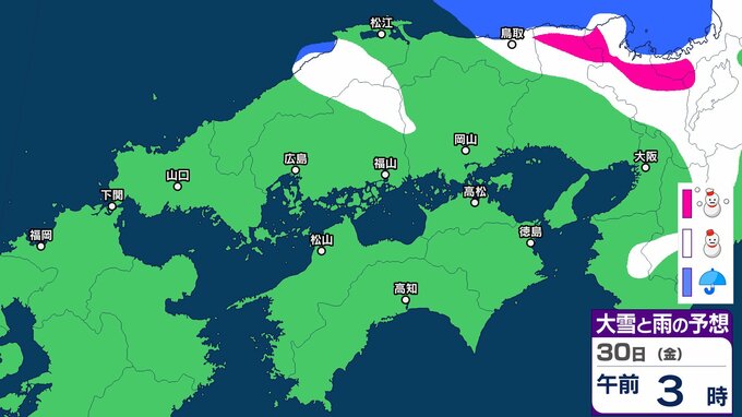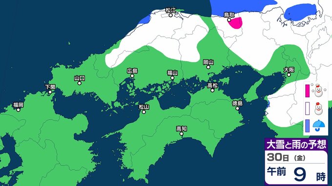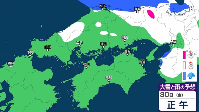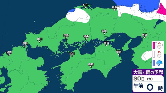 【中国・四国の雪 どうなる?】29日(木)頃から冬型の気圧配置が強まる見込み、中国地方の広い範囲で降雪か?広島・岡山・山口・鳥取・島根・香川・愛媛・高知・徳島 27日(火)~2月1日(日)雪雨シミュレーション【気象庁 27日現在】 RSK山陽放送 2026年1月27日(火) 11:26 国内 天気 30日(金) ▶27日(火)~2月1日(日)中国・四国地方の雪雨シミュレーション