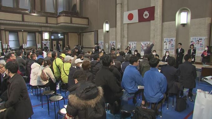 愛知県庁では午前8時半から立候補の受付が行われています。くじ引きで届け出順が決まると、それぞれの陣営の担当者は街頭演説をする際に必要な「腕章」などを受け取って各選挙区に向かいました。
