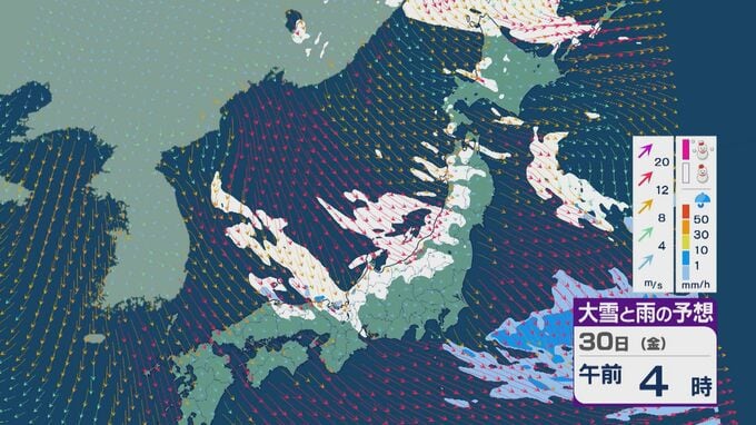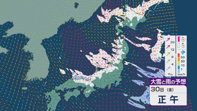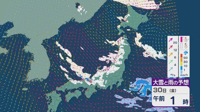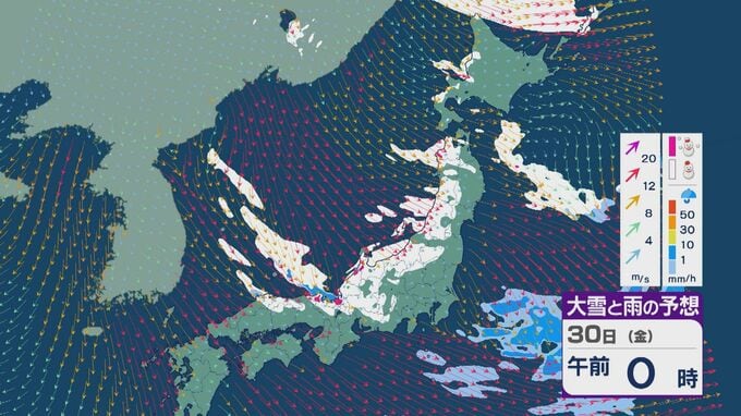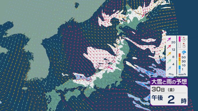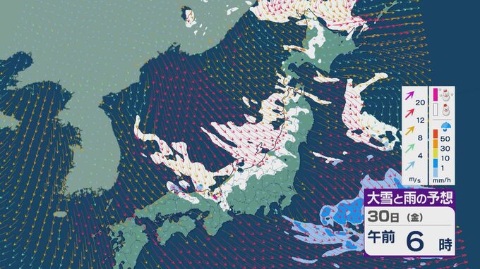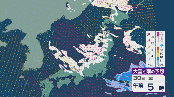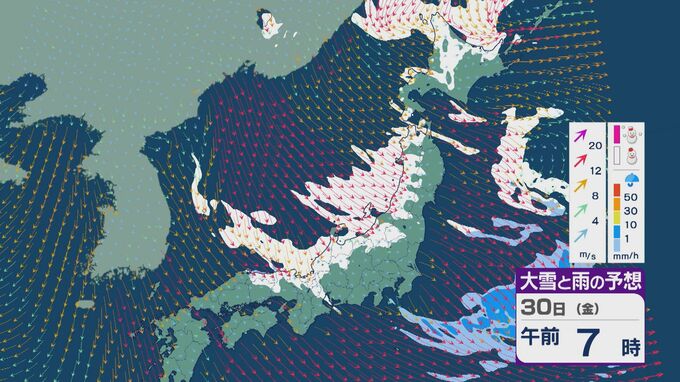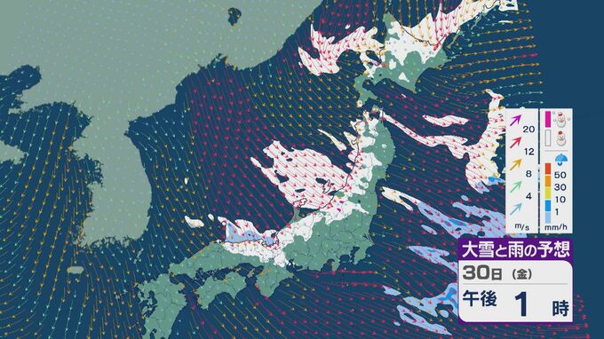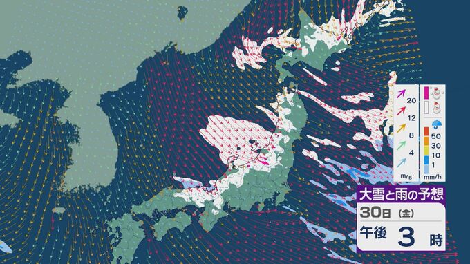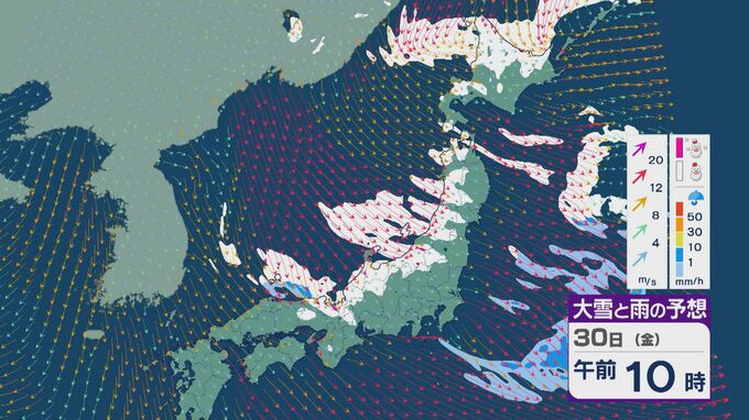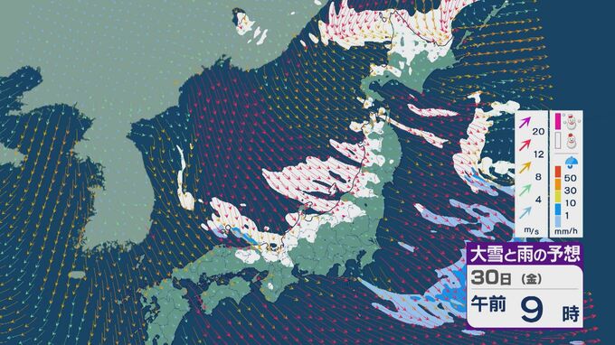 【大雪情報】日本海側は荒れる週の後半に 28日(水)以降“冬型気圧配置”と“強い寒気”が到来 発達した雪雲が北陸などに流れ込むおそれ 積み重なる雪に注意・警戒を 雪と風シミュレーション 北陸放送 2026年1月27日(火) 13:05 国内 30日(金)も、山陰や近畿北部、北陸から東北の日本海側では、北西の風が強く一日を通して雪が降るでしょう。