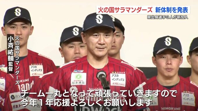 独立プロ野球チームの火の国サラマンダーズは、新たに加入する熊本県出身3選手を含む新体制を発表しました。