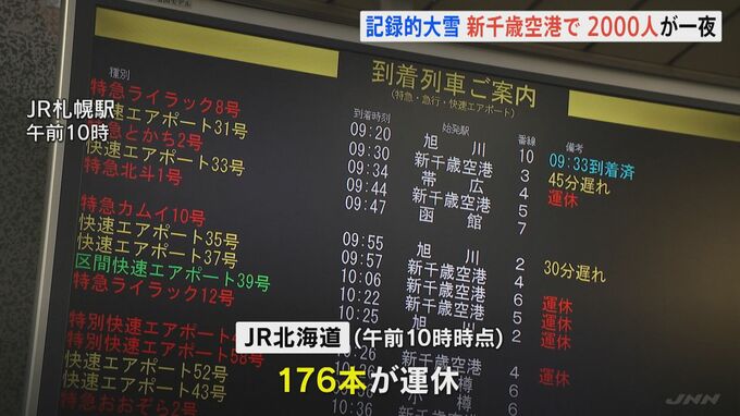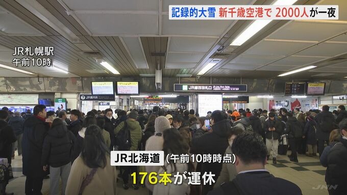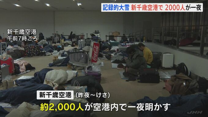 記録的な大雪の影響で、北海道の新千歳空港では、26日から27日にかけても、約2000人が空港内で一夜を明かしました。