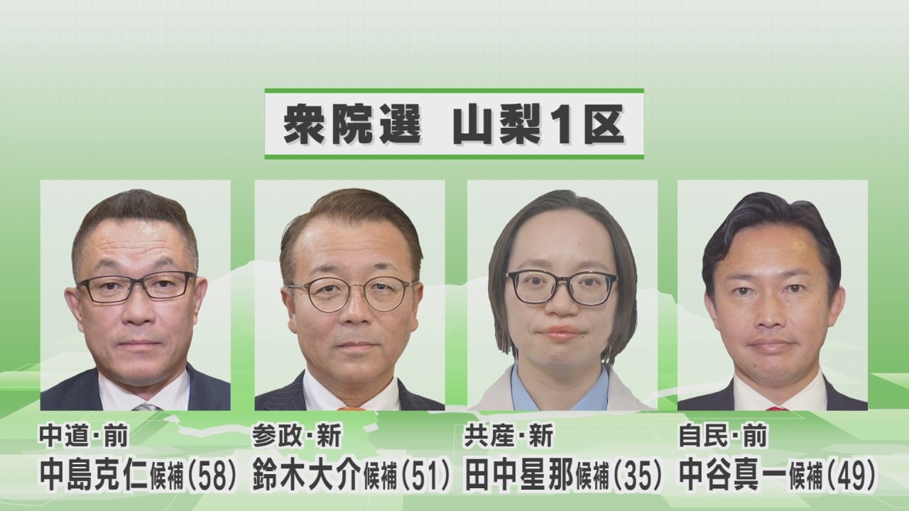 山梨県内では山梨1区に4人、山梨2区に2人が立候補しました。