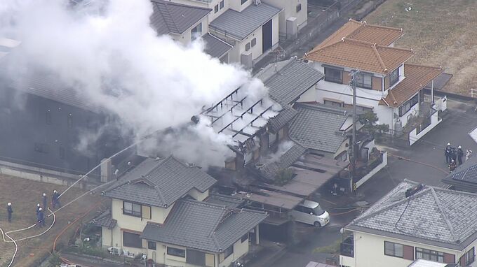 消防車など10台が出て消火にあたり、火は約1時間半後に消し止められましたが、木造2階建て住宅、約100平方メートルが焼け、付近3棟の屋根や壁の一部に延焼しました。