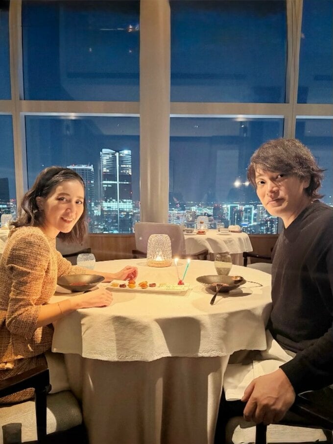 48歳の誕生日を迎え、夫との2ショット写真を公開しました。