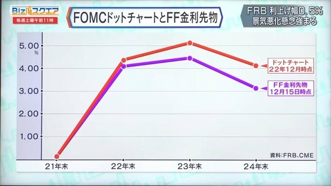 普通はFRBは株が上がるのはいいのですが、来年は景気を悪化させてインフレを下げさせようとしているので、そういう意味では株式市場がどんどん先読みで上がっていくと、今の局面では困ったなということになってしまう。
