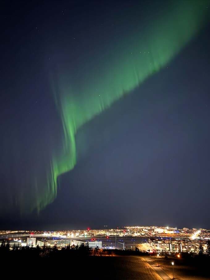 さらに、街明かりの先に広がる夜空を彩るオーロラの画像も披露。