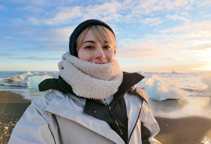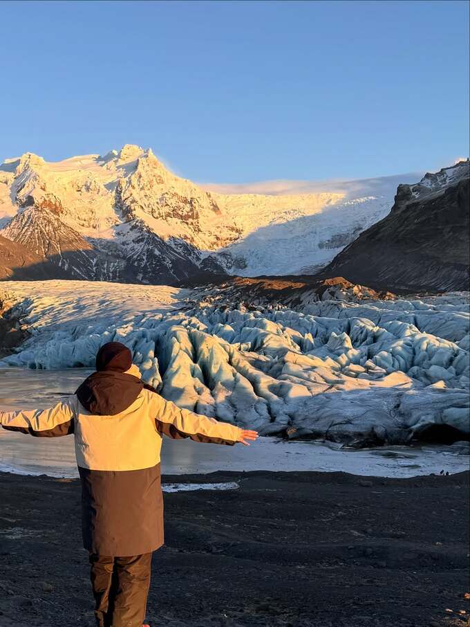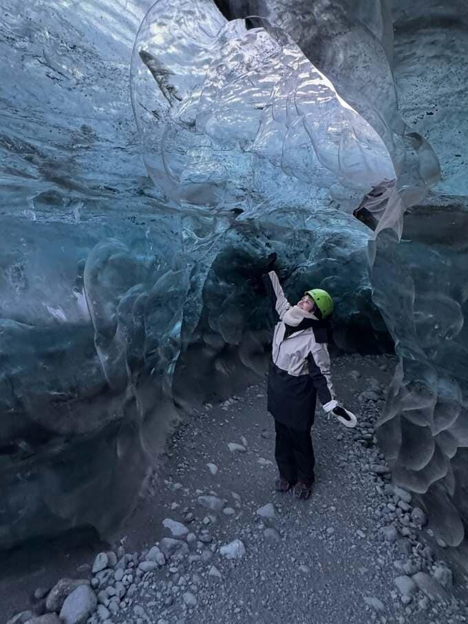 投稿された写真の中には、巨大な氷の洞窟を訪れ、驚きの表情を浮かべながら手を伸ばす臨場感あふれる姿も。