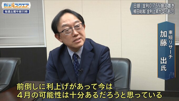 「年が明けてから円安が随分進み、またベッセント米財務長官が、要は『日銀の金利が低すぎるから円安になっている』と言っている。日本政府が為替介入しなければならないような円安圧力が今後続く場合は、もう少し利上げしたらとベッセント財務長官は何度も言ってくるだろうから、前倒しに利上げがあって、今は“4月の可能性は十分あるだろう”と思っている」