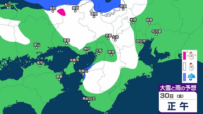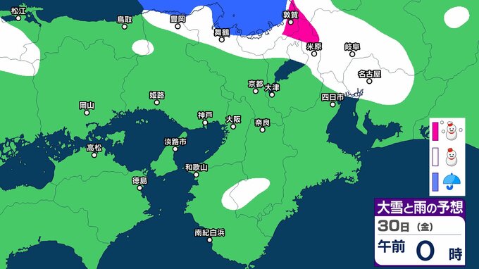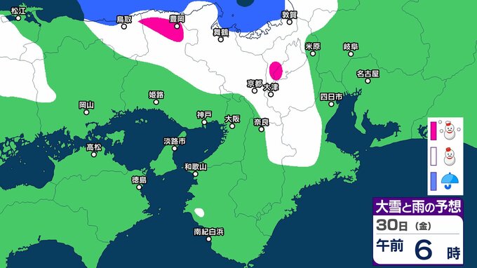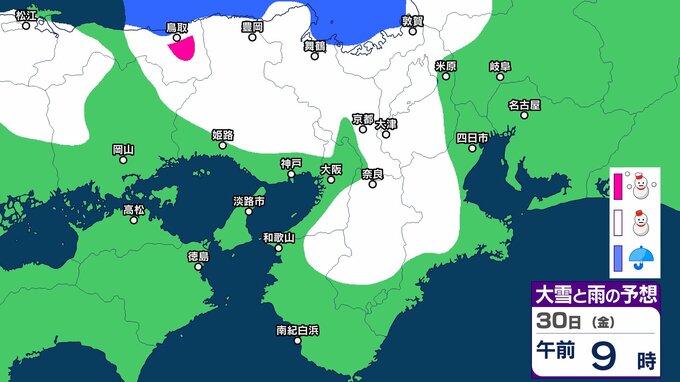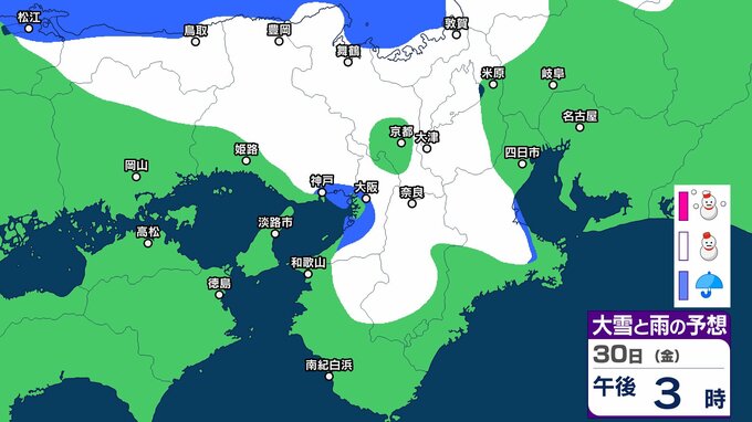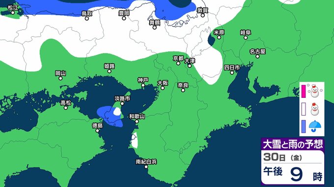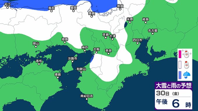 シミュレーションでは、兵庫、京都、滋賀、奈良、和歌山、大阪に雪雲がかかっています。一部地域では大雪になる予想です。