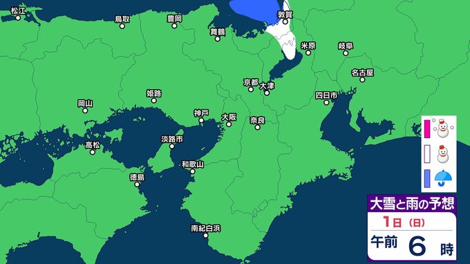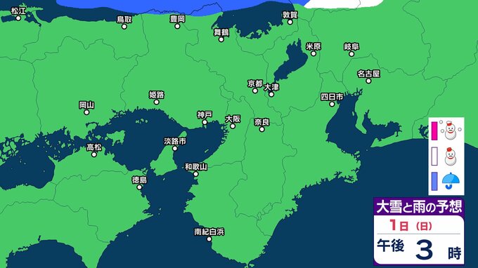 【関西の雪どうなる?】冬型の気圧配置が強まる見込み→近畿地方は29日(木)~30日(金)頃「大雪」のおそれ 27日(火)~2月1日(日)雪雨シミュレーション 大阪・京都・神戸・滋賀・奈良・和歌山の天気予報【気象庁 27日現在】 RSK山陽放送 2026年1月27日(火) 16:45 国内 天気 1日(日) シミュレーションでは、滋賀の一部地域に雪雲がかかっています。 34 35 36 37 38 39 40 ▶27日(火)~1日(日)近畿地方の雪雨シミュレーション
