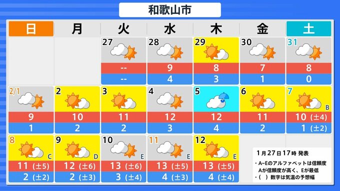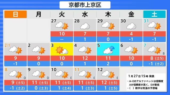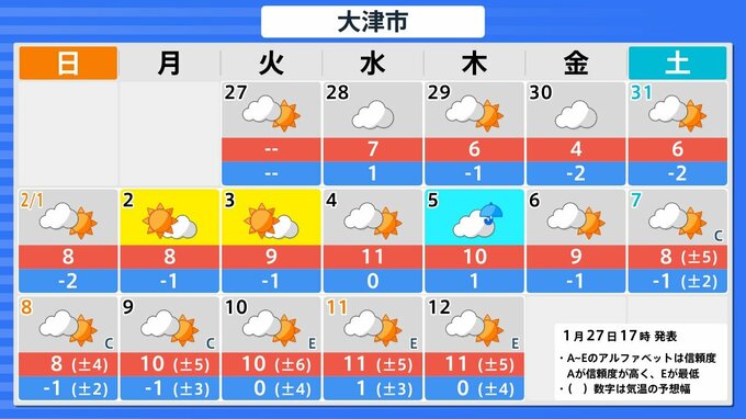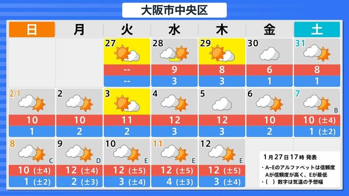 【関西の雪どうなる?】冬型の気圧配置が強まる見込み→近畿地方は29日(木)~30日(金)頃「大雪」のおそれ 27日(火)~2月1日(日)雪雨シミュレーション 大阪・京都・神戸・滋賀・奈良・和歌山の天気予報【気象庁 27日現在】 RSK山陽放送 2026年1月27日(火) 16:45 国内 天気 大津・京都・大阪・神戸・奈良・和歌山の16日間天気予報 予想にはブレ幅があるため、今後の気象情報をこまめに確認してください。