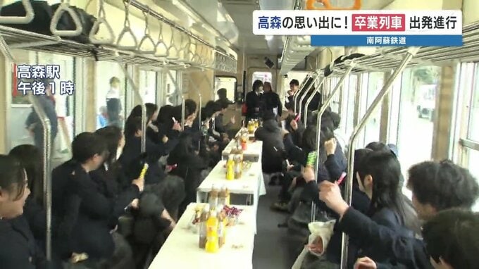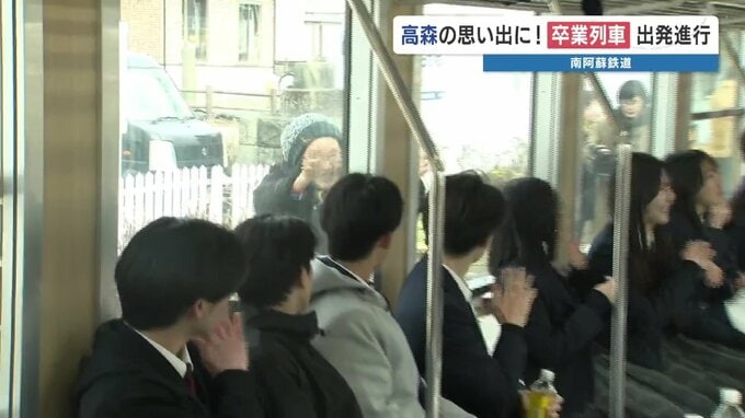 熊本県の郡部にある高森町で、卒業間近の高校3年生を南阿蘇鉄道に招待する、恒例の「卒業列車」が運行されました。
