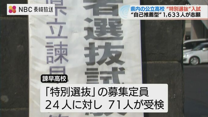 このうち、諫早高校では、「特別選抜」の募集定員24人に対し71人が受検しました。