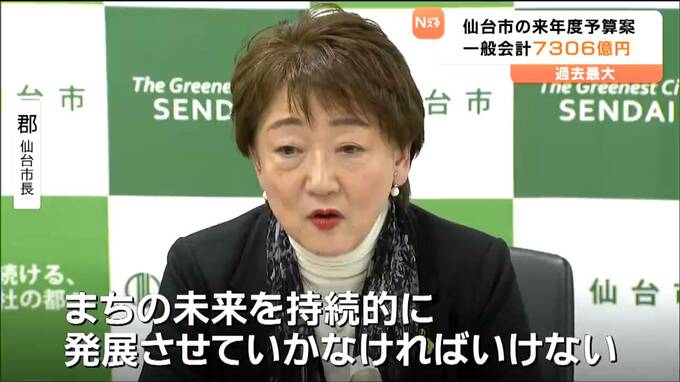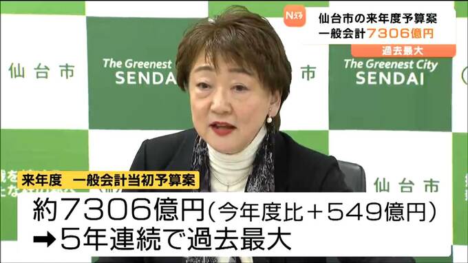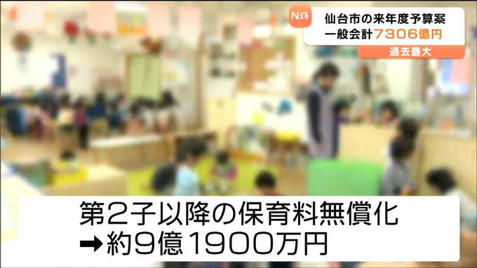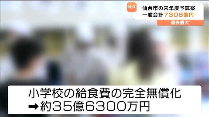 仙台市は、約7306億円の一般会計当初予算案を編成し、2月開会する市議会に提出します。第2子以降の保育料の無償化や学校給食費の完全無償化などの費用が盛り込まれ、予算規模は5年連続で過去最大を更新しました。