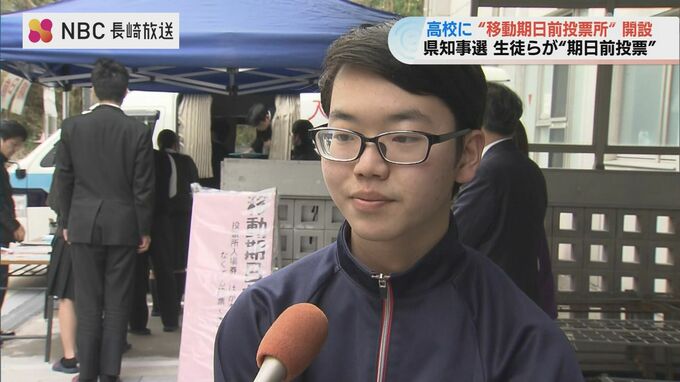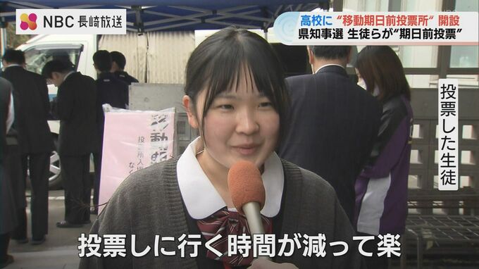 来月8日、投開票が行われる長崎県知事選挙を前に長崎市の高校で、27日、ジャンボタクシーを利用した「移動期日前投票所」が開設されました。