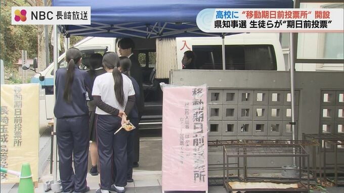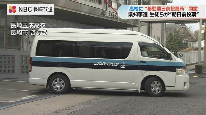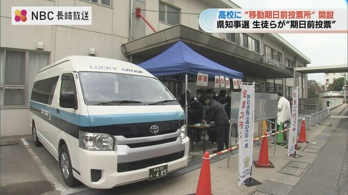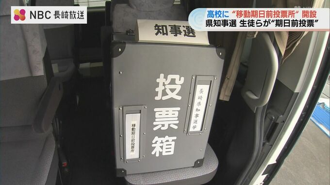 長崎市が去年の参院選から導入した“移動式の期日前投票所”。ジャンボタクシーの中に「投票箱」を設置している「移動期日前投票所」が、県内の高校で開設されるのは今回が初めてです。