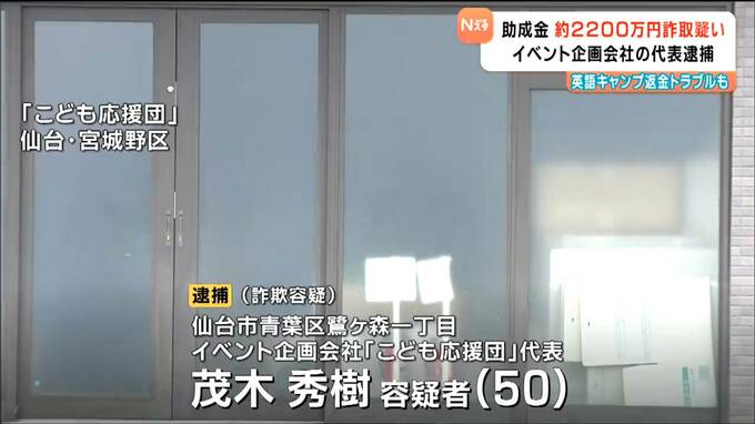 詐欺の疑いで逮捕されたのは、仙台市青葉区鷺ヶ森1丁目のイベント企画会社「こども応援団」の代表、茂木秀樹容疑者(50)です。