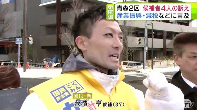 国民民主党の新人・金濱亨 氏(37)は、八戸市廿三日町の事務所前で第一声をあげ、手取りを増やす政策の実現などを訴えました。