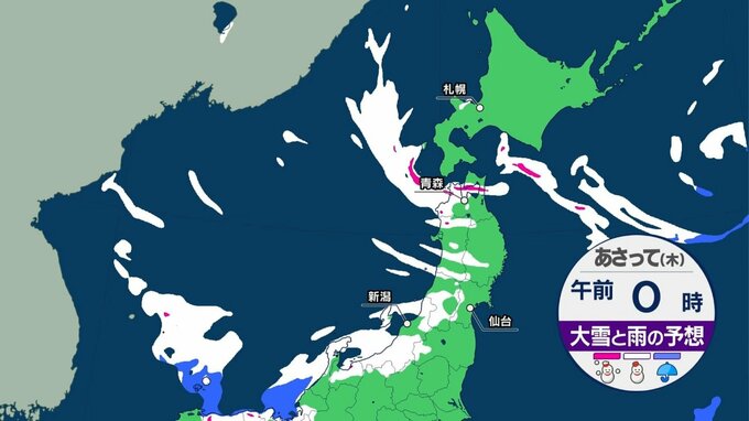 でも、それもつかの間です。あすの夜から再び強い寒気が流れ込んで、真冬の寒さが戻ってきます。金曜日にかけて日本海側は大雪になる所があるでしょう。