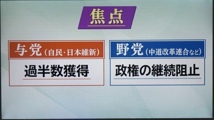新たに連立を組んだ自民党と日本維新の会が、与党で過半数獲得を掲げて臨んでいます。