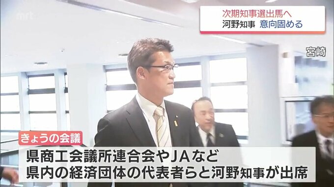 来年1月に任期満了を迎える宮崎県知事選挙に現職の河野知事が立候補の意向を固めたことが関係者への取材で分かりました。河野知事は、27日、経済団体の代表者らと今後の県政運営について意見交換をしました。27日…