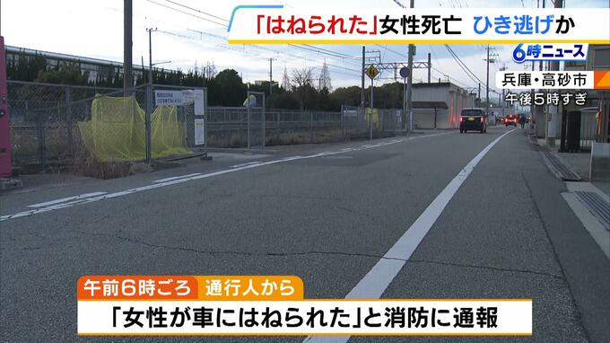 1月27日朝、兵庫県高砂市の路上で女性がひき逃げされ死亡したとして、警察が捜査しています。 27日午前6時ごろ、兵庫県高砂市の路上で、「女性が車にはねられた」と通行人から消防に通報がありました。 警…