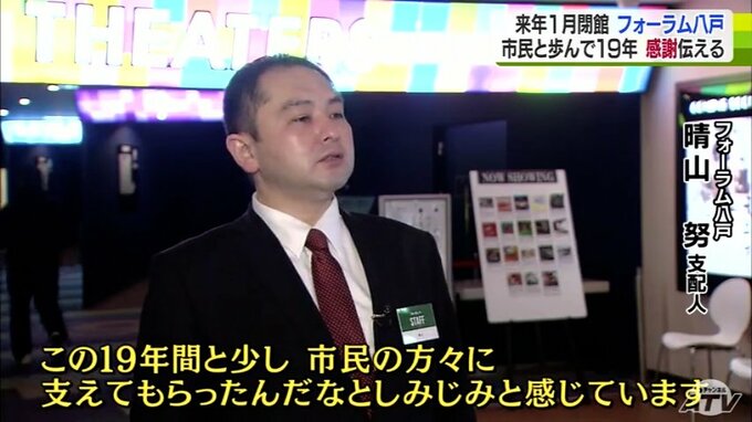 こう語るのは、フォーラム八戸がオープンした2003年9月から勤務している晴山努(はれやまつとむ)さん45歳です。2005年からは支配人として働いてきました。八戸市の中心街・十三日町(じゅうさんにちまち)のファッションビル「チーノはちのへ」の5階に「八戸フォーラム」の名前でオープン。