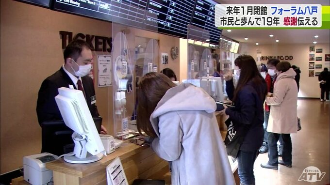 2023年1月5日の閉館まで3週間を切ったフォーラム八戸。18日の日曜日は、迫る別れを惜しむかのように多くの客が訪れ、チケット売り場の前には列ができていました。