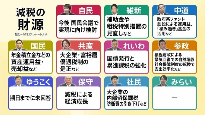 【減税の財源(各党へのTBSアンケートより)】