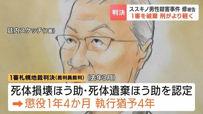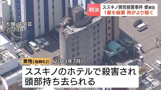 3年前、札幌・ススキノのホテルで男性が殺害され、頭部が持ち去られた事件で、娘の犯行を手助けした罪に問われた父親の田村修被告(62)に対し、札幌高裁は1審判決を破棄し、より軽い懲役1年・執行猶予3年の判決を言い渡しました。