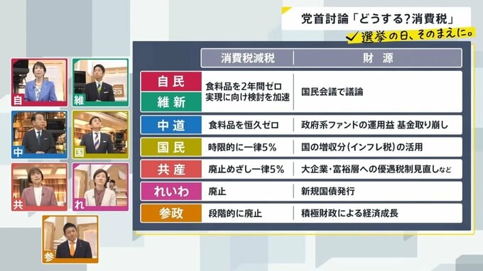 前の番組で「2026年内に実現するのか」というイエス、ノーの2択で質問がありました。我々や野田代表も含め、玉木代表以外は全員「イエス」と手を挙げたんです。要はいち早くということで、「今回の選挙が終わってすぐの法案で、全部消費税をゼロにしないと間に合わないじゃないか」「システムを介しているじゃないか」ということを問うているのでしょうか?。国民会議で各党が消費税について下げようという話であれば、その手法や時期、財源について合意形成をする期間を含めた、実現を見る法案をきちんとやるということで、私は2026年度の解釈です。