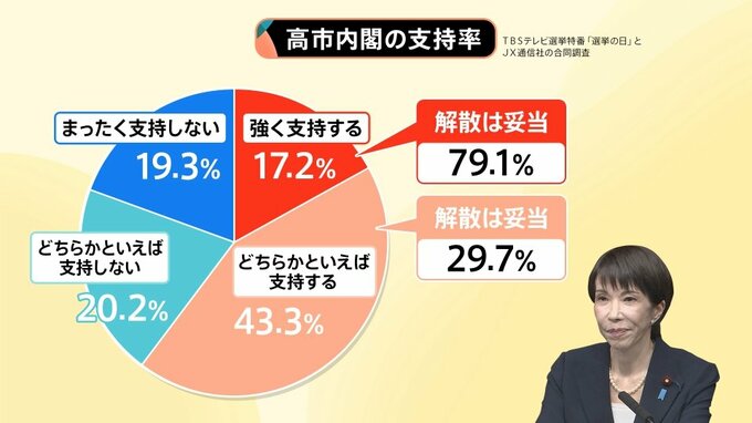 高市総理にとっては、「強く支持する」17%を固めるだけでは足りず、「どちらかといえば支持する」という消極的な支持層についても、一定程度固めなければならないという状況だと思います。