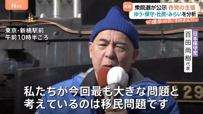 「私たちが今回最も大きな問題と考えているのは移民問題です。日本のために頑張ってくれている移民の皆さんいます。(移民政策を)抜本的に見直そうじゃないか」